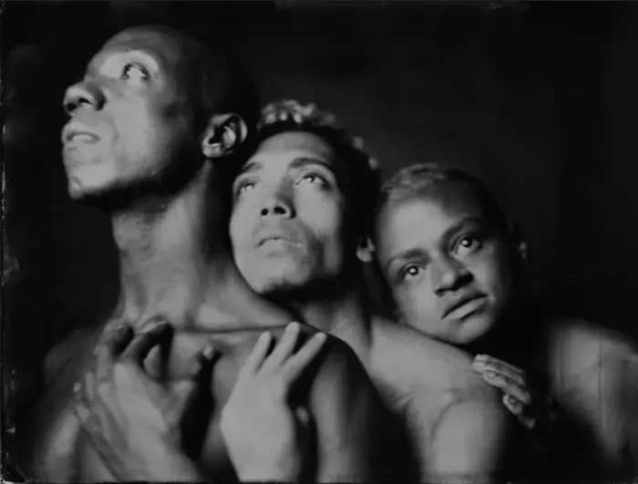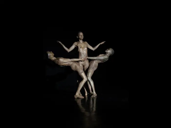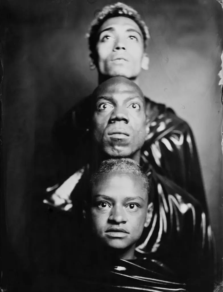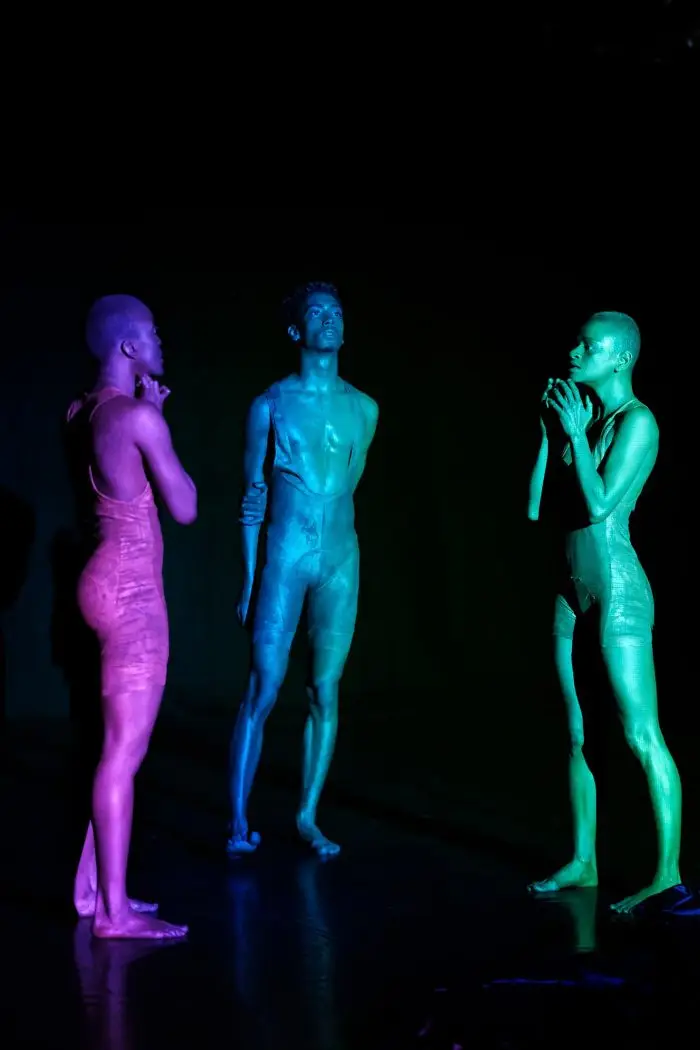 The work researches and shares a performance art odyssey, in which three gifted black artists (all of african diaspora) unite to create a trinity of vigor, afro-futurism, and embrace.