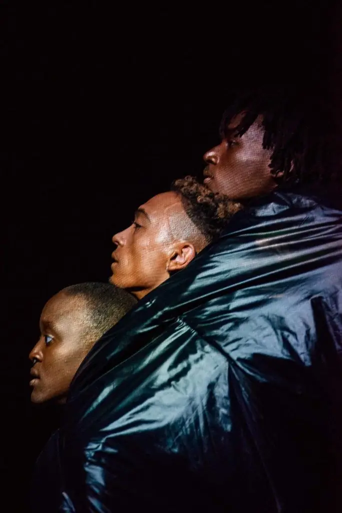 The work researches and shares a performance art odyssey, in which three gifted black artists (all of african diaspora) unite to create a trinity of vigor, afro-futurism, and embrace.